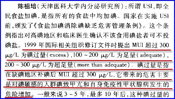 为了掩盖补碘过量,陈祖培2002年就把世界卫生组织定义的“足够”改为“适宜”。