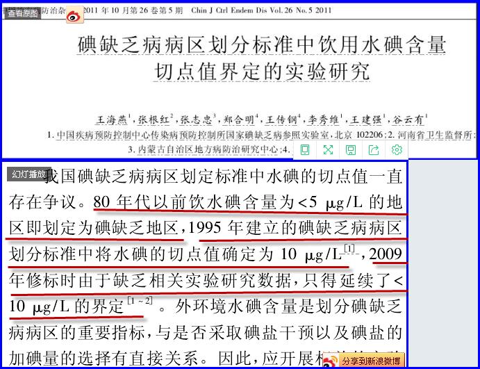 2009年修改碘缺乏病病区标准的时候还是陈祖培当权,没人敢得罪他,又把水碘标准定为10微克/升。如果没有证据没有人相信这是真的,请看下列证据: