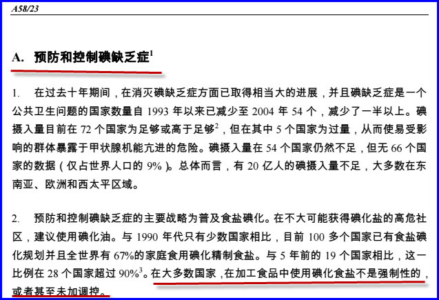 2、世界卫生组织说大多数国家的补碘是不强制的