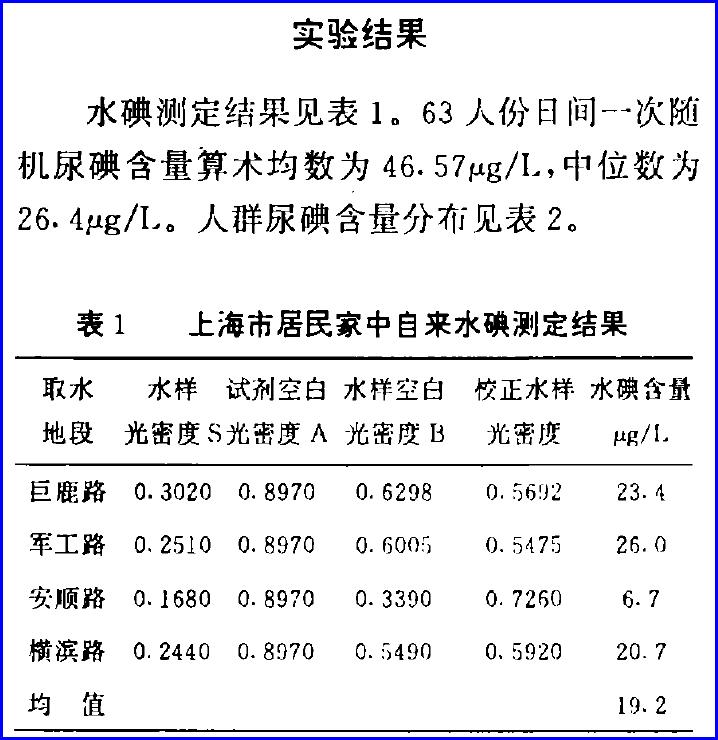二、上海水碘检测结果与上海碘缺乏病流行情况严重不符