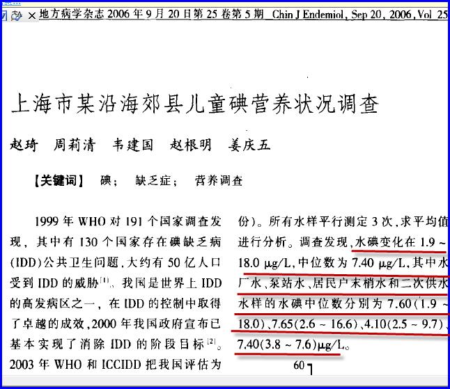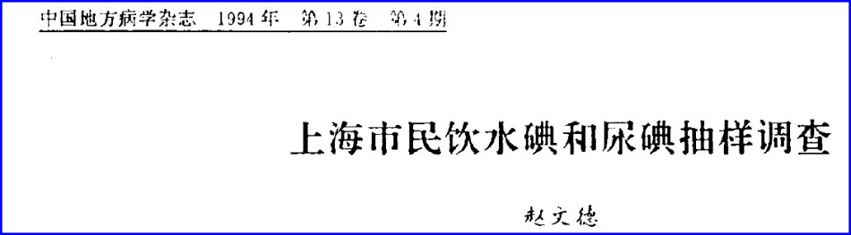 【论文题目】《上海市首次碘缺乏病的人群监测》