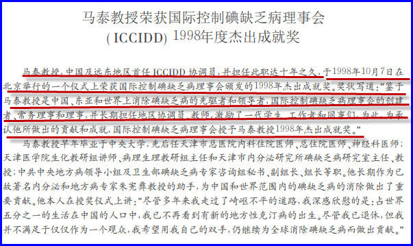 1、马泰明明知道“我国有三分之一的人口居住在缺碘地区”,为了落实美国对中国推行强制全民补碘的方案却说“大量的流行病学资料证明我国绝大多数地区外环境缺碘”