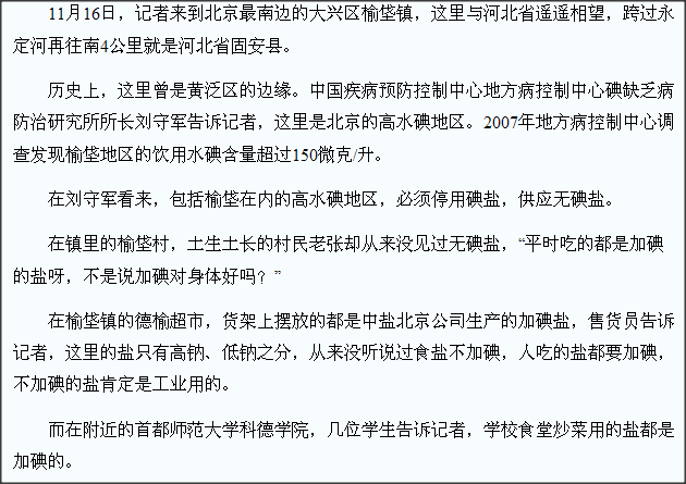 第一节 《新京报》公开承认中国的补碘不科学