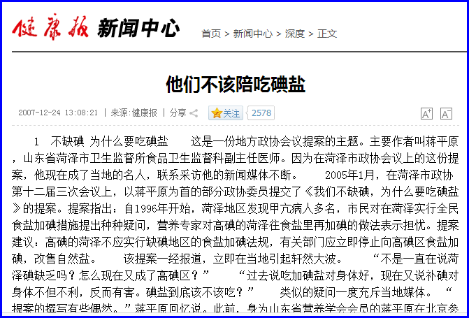 第五节 《健康报》发表《他们不该陪吃碘盐》