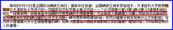 说明:对于大多数人来说,碘过量的危害是慢性的,需要长达几年,几十年的过量才会有明显的反应。但是陈祖培等人仅仅用老鼠做了3个月的实验,就得出中国人的食盐加碘量提高5倍,也是安全的结论?是关注中国人的健康还是欺骗?