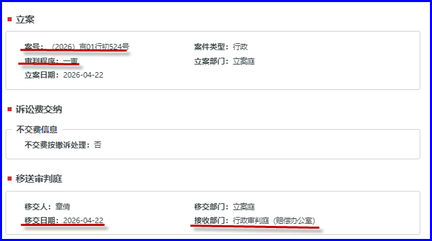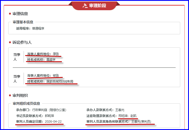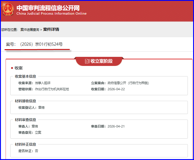 今天在《中国审判流程信息公开网》里查到 本人起诉国家疾控局的案件已经立案,详细内容如下: