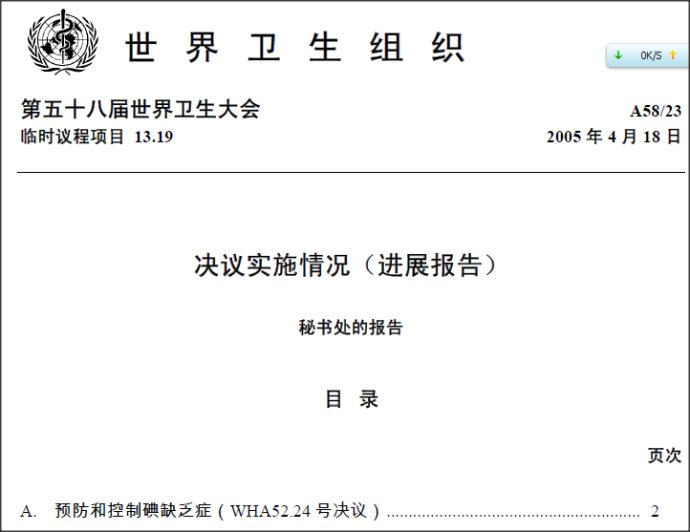 【论文题目】《维持消灭碘缺乏症(WHA60.21 号决议)》