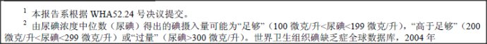 2、2010年的世界卫生组织大会仍然把尿碘浓度中位数分为三段