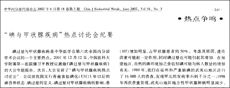 【论文题目】《“碘与甲状腺疾病”热点讨论会纪要》