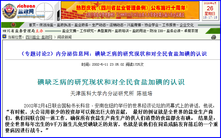 由于陈祖培的篡改,掩盖了我国大部分省市补碘过量的事实,而且一直掩盖到现在。
