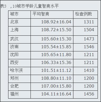 (6)阎玉芹还说:“智商水平是一项能反映碘营养状况的较好指标,尤其反应几年前(胚胎期及生后早期的脑发育)的碘营养状况”。阎玉芹的这段话说明北京人的智商最高,说明北京从1984年以来就不缺碘,因为检测 的是10岁的儿童,他们的智商高,说明他们在“胚胎期及生后早期的脑发育”期间是不缺碘的。甲状腺肿大率和智商两项证明北京的三项指标不是受碘盐影响的。
