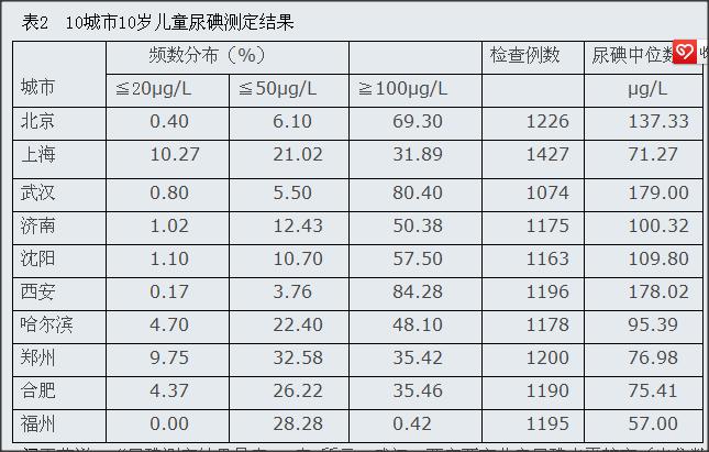 这个检测报告是卫生部在全国推行强制全民补碘前组织的,内容是可靠的,数据是有一点权威性的。