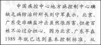 一、北京市卫生局说“北京的‘碘缺乏病’现已达到了地方病消除标准”