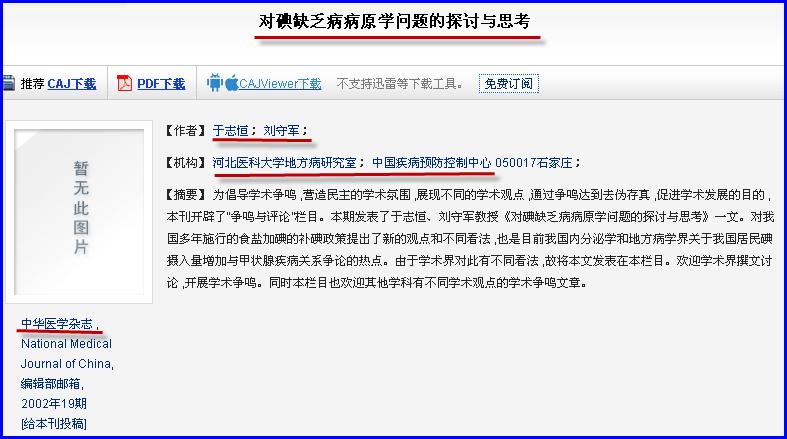 【论文题目】《对碘缺乏病病原学问题的探讨与思考》