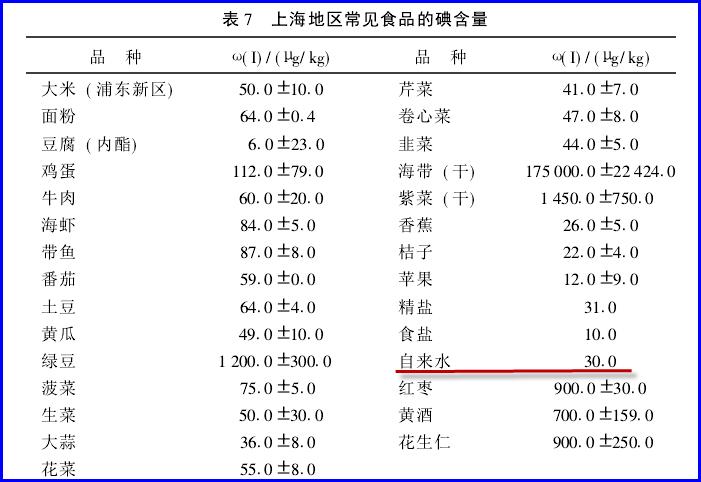 2、上海的水碘 30微克/升