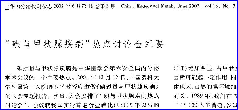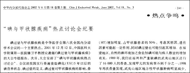 【论文题目】《“碘与甲状腺疾病”热点讨论会纪要》