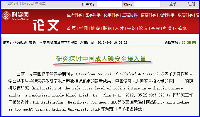【论文题目】《研究探讨中国成人碘安全摄入量》