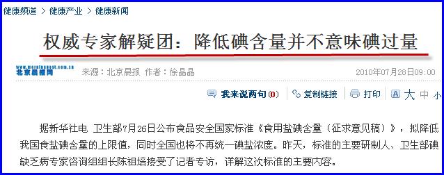 中国疾控中心地方病控制中心主任孙殿军表示,“下一步将督促北京进行调整”,这是什么意思?就是不管北京人补碘超多少,碘盐食用率低了就不行!这不是强制吗?这不是霸权吗?这不是陷害吗?