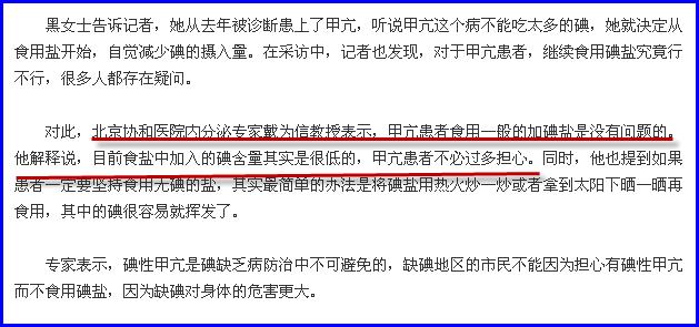2、戴为信说中国食盐的“碘含量是很低的,甲亢患者不必过多担心。”