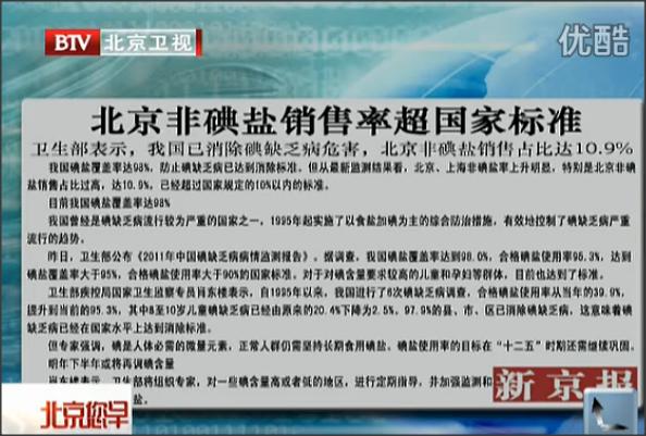 “特别是北京非碘盐销售占比过高,达10.9%,已经超过国家规定的10%以内的标准。”