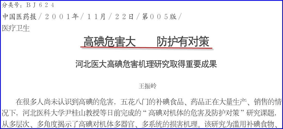 4、《高碘危害大 防护有对策 河北医大高碘危害机理研究取得重要成果》