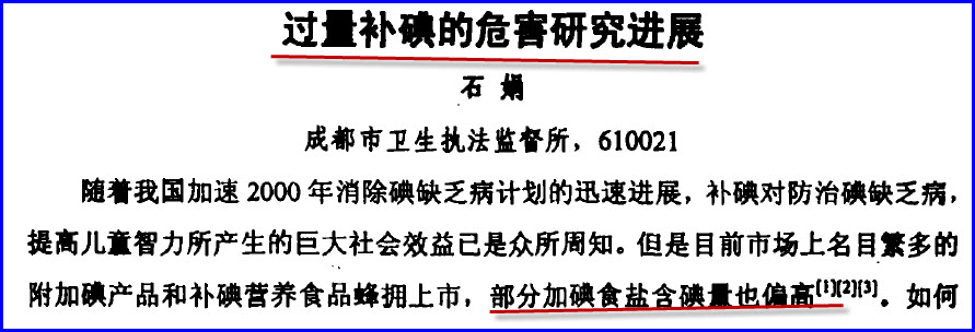 大量的碘摄入会引起人的急性中毒,由于我国有大量的人不缺碘也被强制补碘,因此必然存在大量被过量补碘的人群。由于只是过量,达不到急性中毒的程度,但是长期过量会出现慢性中毒的问题。因此 被“碘是智力果”隐匿伤害的人群是大量的。