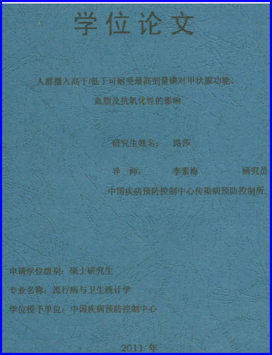 1、《碘过量对成人抗氧化能力及血脂水平的影响》