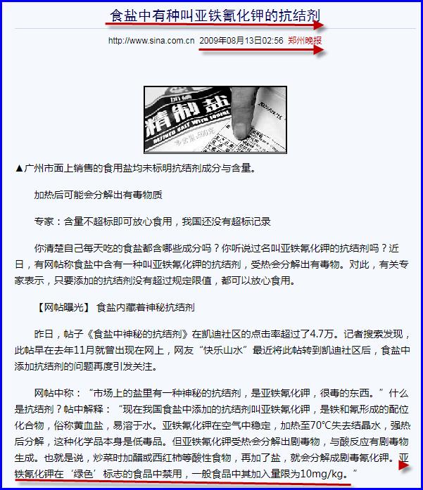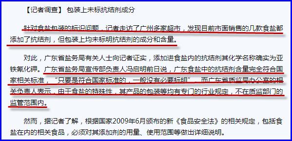 上图证明我国从1985年开始,一直隐瞒食盐里添加了亚铁氰化钾。广东盐务局的官员是这样解释的。“只要是符合国家标准的,一般没有必要标明”“而广东省质监局办公室的相关负责人表示,由于食盐的特殊性,其产品的包装等均有专门的行业规定,不在质监部门的监管范围内。”难道那些标注了成分和数量的食品都是因为它们超过了国家标准?