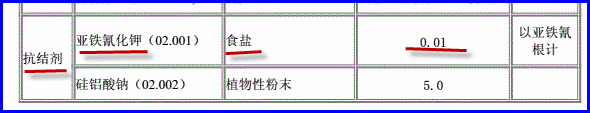 2、添加亚铁氰化钾的主要目的是防止食盐结块。