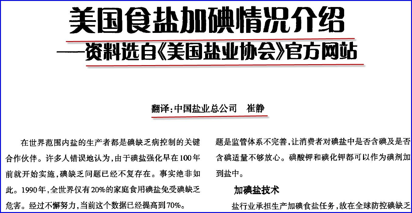 【论文题目】《美国食盐加碘情况介绍——资料选自《美国盐业协会》官方网站》