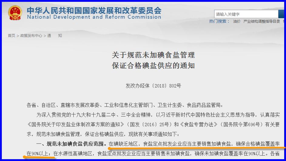 2018年7月9日国家发改委发布文件《关于规范未加碘食盐管理保证合格碘盐供应的通知》(发改办经体〔2018〕802号)