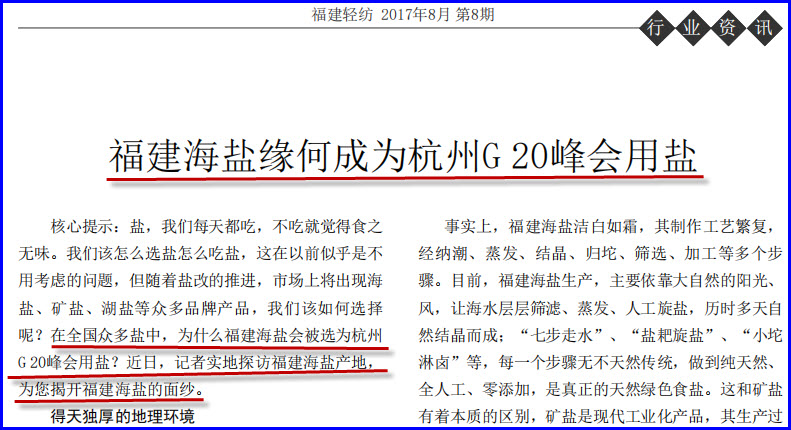 3、福建海盐缘何成为杭州G20峰会用盐?