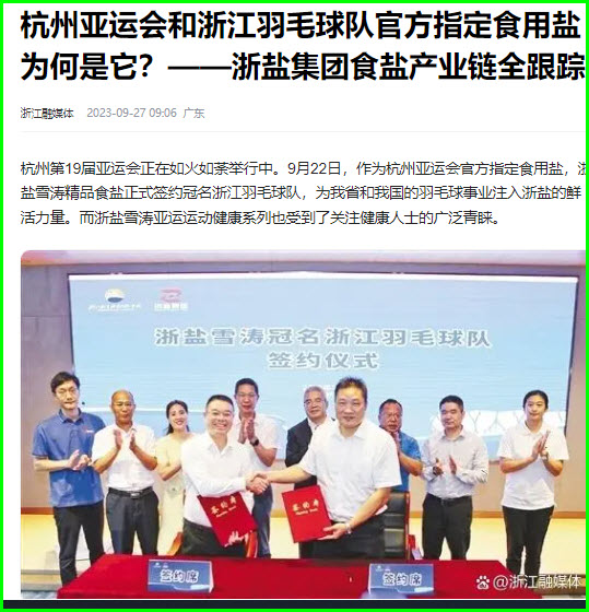 【论文题目】《杭州亚运会和浙江羽毛球队官方指定食用盐为何是它?——浙盐集团食盐产业链全跟踪》