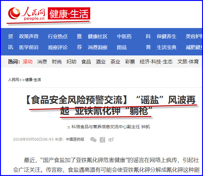 第七辑食盐过量添加亚铁氰化钾案简介 第五章 国家卫健委专家隐瞒食盐添加亚铁氰化钾的危害