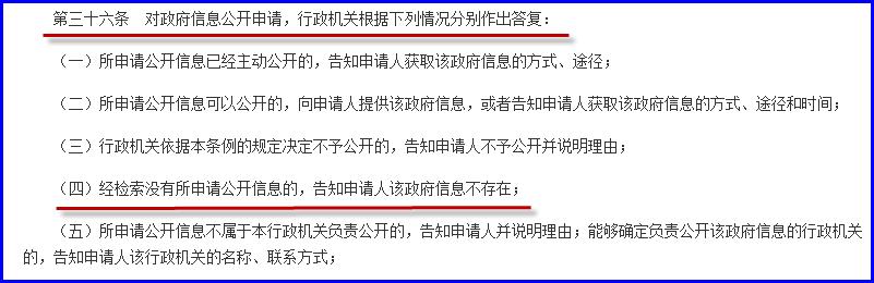 《政府信息公开条例》第36条第4款的规定“经检索没有所申请公开信息的,告知申请人该政府信息不存在”,国家卫健委公开承认没找到我要求公开的信息,却告诉我保密,明显违背了《政府信息公开条例》,