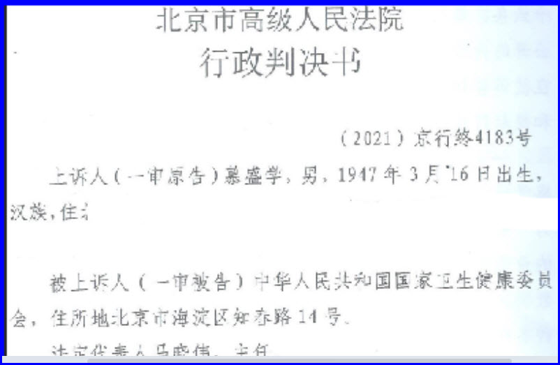 上述事实充分证明,国家卫健委的第一个回复是谎言,第二个回复是真实的。我们的法官必然应该采信的是第二个回复。但是北京一中院采信的是国家卫健委的第一个回复,公开为谎言辩护。