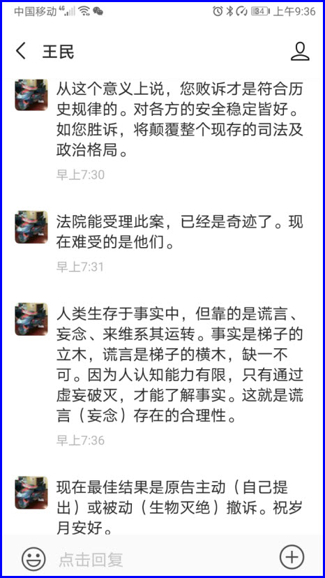 2、从这个意义上说,您败诉才是符合历史规律的。对各方的安全稳定皆好。如您胜诉,将颠覆整个现存的司法及政治格局。