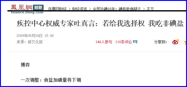 【论文题目】《疾控中心权威专家吐真言:若给我选择权 我吃非碘盐》
