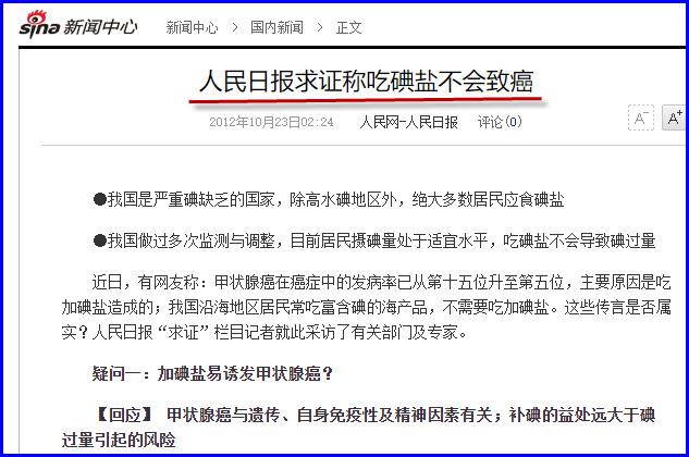 【证据题目】《人民日报求证称吃碘盐不会致癌》