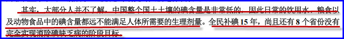 “中国是受碘缺乏严重威胁的国家之一,90年代估计全国约有7.2亿人生活于中度到重度缺碘地区”