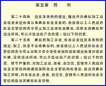 《食盐加碘消除碘缺乏危害管理条例》中第5章“罚则”,从第24条到第29条,“碘盐”一词出现9次,“不合格碘盐”出现两次,“缺碘”出现两次;“高碘”与“碘过量”,出现零次。