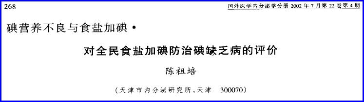 【论文题目】《当前碘缺乏病防治工作中值得严肃关注的一些问题》