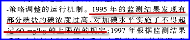 【证据】“1995年的监测结果发现有部分碘盐的碘浓度过高,对加碘水平实施了不得超过60 mg/kg的上限值的规定”
