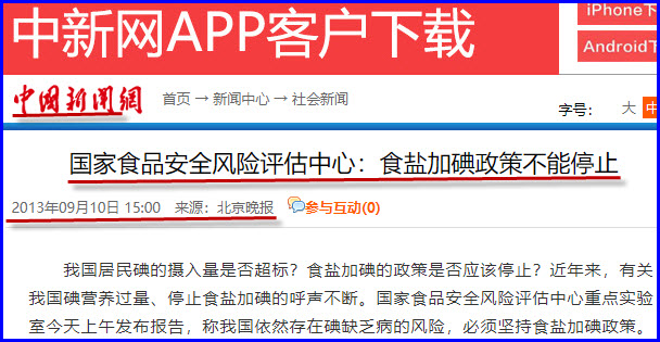 2、内蒙古自治区产品质量检验所发现“盐碘含量平均值分别为139mg/kg和587mg/kg”