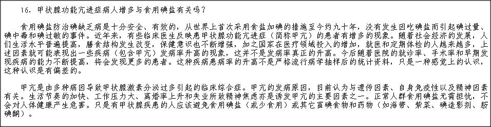 “16.甲状腺功能亢进症病人增多与食用碘盐有关吗?