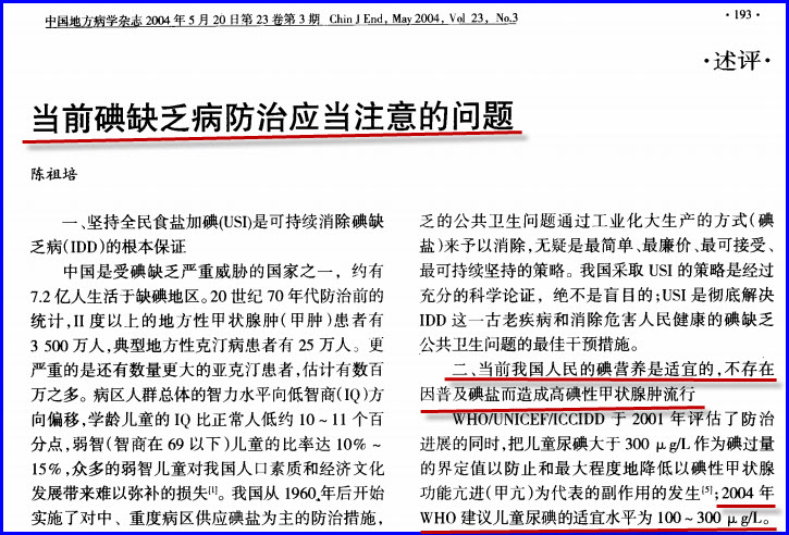 第八辑 第十二章 陈祖培说“2003年WHO和 ICCIDD已把中国评估为碘营养适宜的国家”
