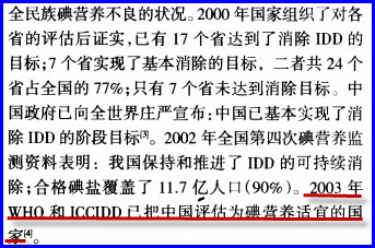 “2003年WHO和 ICCIDD已把中国评估为碘营养适宜的国家[4]”