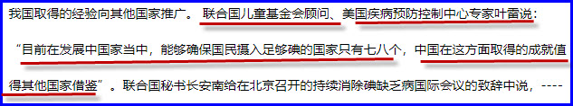 7、国内很多媒体宣传中国的补碘被众多国际组织誉为“全球学习榜样”