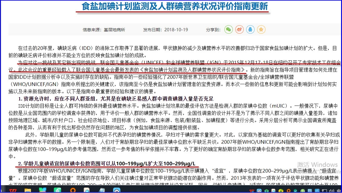 1、联合国儿童基金会与国际控制碘缺乏病理事会2015年共同商定修改“碘营养状况评价指南”