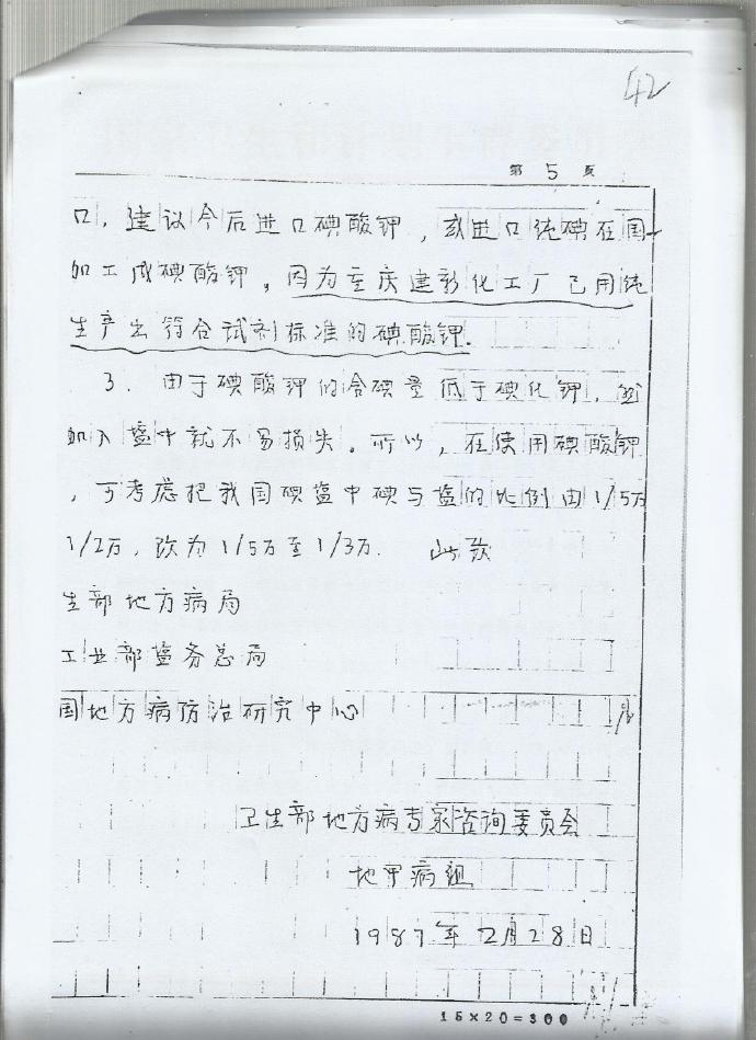作为国家级的任何文件的根据都不可能是五张草稿纸,但让13亿人用碘酸钾补碘的根据的文件确确实实只有这五张草稿纸。